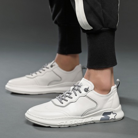 Autumn New Sports Shoes Men's Leather Hot Style Casual Men's Shoes Low-Cut White Shoes