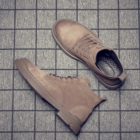 Martin Boots Men's Autumn New Fashion Casual Leather Boots Add Velvet Warm Leather High-Top Boots for Men