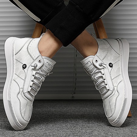 Summer Men's Board Shoes Soft Leather White Shoes Mens Leather Trendy Shoes Shell-Toe Daily Casual Shoes