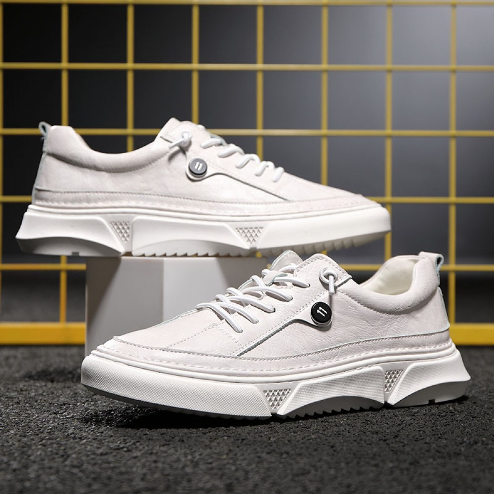 Men's Leather White Shoes New Autumn Casual Shoes Mens Trend Sports Shoes
